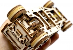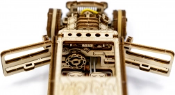 Po nahlédnutí střechou uvidíte detailní motor, dvojité sedadlo i řadicí páku. Díky promyšlené mechanice si užijete zábavu nejen při stavbě, ale i při následné hře a vystavení. Model je vyroben z ekologické březové překližky, v balení je obrázkový návod. Obtížnost 3/5, orientační čas stavby cca 2 hodiny.