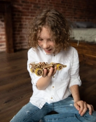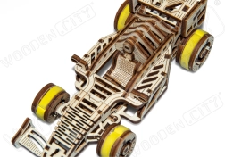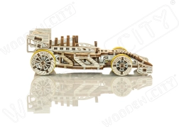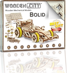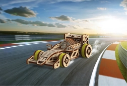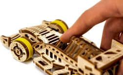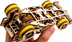 Dřevěný 3D puzzle Závodní Vůz od WOODEN CITY je fascinujícím doplňkem pro všechny fanoušky mechaniky a závodních vozů. Vyniká předními otočnými koly, setrvačníkovým mechanismem a vratným kolem. Model je vybaven gumičkovým motorem, který umožňuje pohon vozu až na 45 cm na jedno natažení.