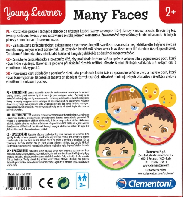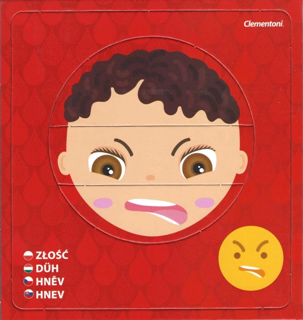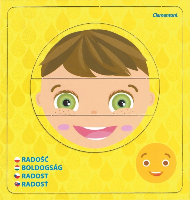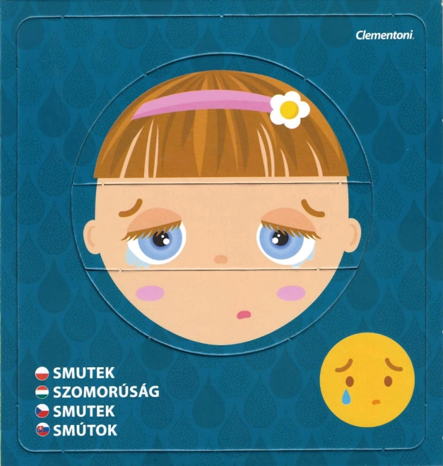 Objevte svět emocí s dětským puzzle CLEMENTONI Young Learner. Každý z 6 obrázků se skládá ze 3 dílků a znázorňuje odlišnou náladu s názvem pocitu a odpovídajícím emotikonem. Děti mohou tváře skládat samostatně nebo je vkládat do rámečků, čímž si hravou formou procvičují rozpoznávání výrazů.