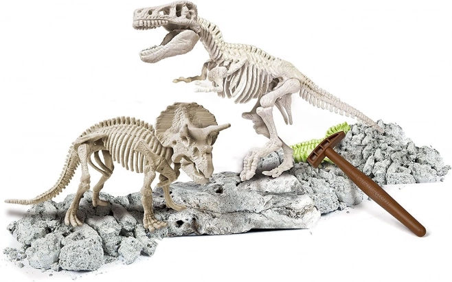 Tato vzdělávací sada z řady Science & Play přináší autentický zážitek z paleontologického výzkumu. V bloku „horniny“ najdeš díly dvou detailních koster, které pomocí kladívka a dlátka opatrně uvolníš a následně složíš do impozantních modelů. Speciální fluorescenční materiál pohlcuje denní světlo a poté září ve tmě, což zvyšuje efekt wow a motivuje k dalšímu zkoumání.