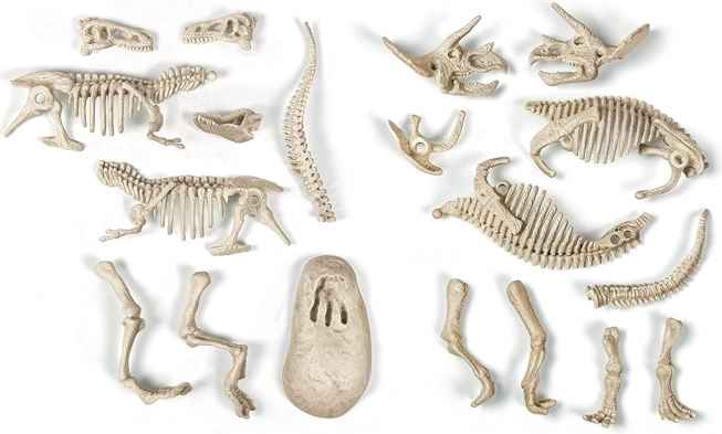 Použij kladívko a dlátko, opatrně vykopej „fosilie“ z bloku a sestav detailní skelet. Skvělý způsob, jak trénovat zručnost a trpělivost.