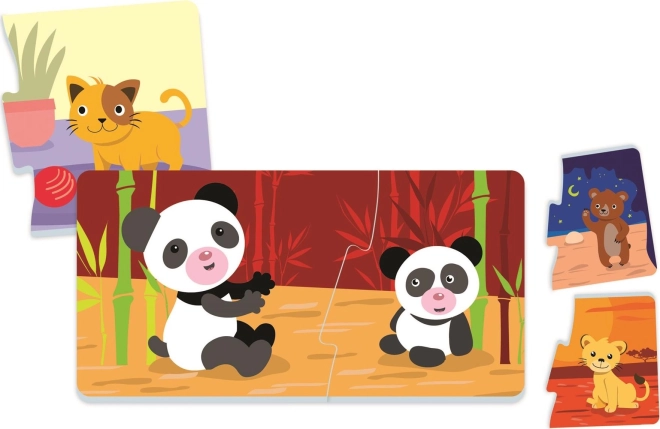 Objevte zábavný způsob, jak se děti naučí rozpoznávat zvířata a jejich mláďata. Každé mini puzzle tvoří dva velké a snadno uchopitelné dílky, které dítě intuitivně spojuje. Ideální pro první skládání díky pevnému zpracování a jasným ilustracím.