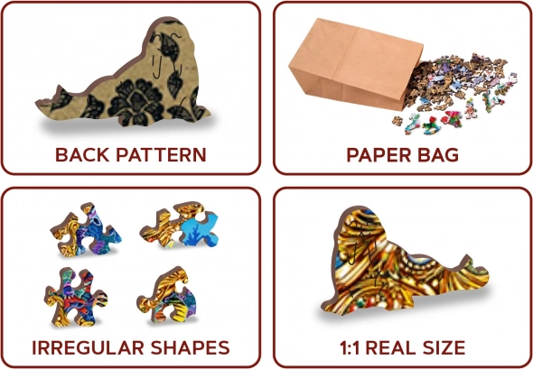 Každý dílek je vyřezán z pevné HDF desky o síle 3–4 mm, což zaručuje dlouhou životnost a pohodlné skládání bez třísek. V balení najdete i samostatnou předlohu pro snazší orientaci. Udržitelný přístup značky WOODEN CITY znamená 100% eko balení bez plastů – puzzle je uloženo v papírovém sáčku a krabičce.