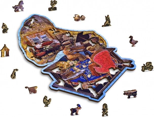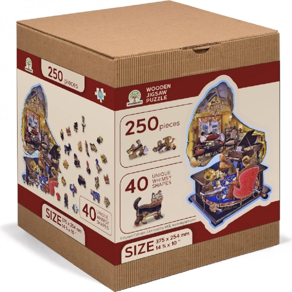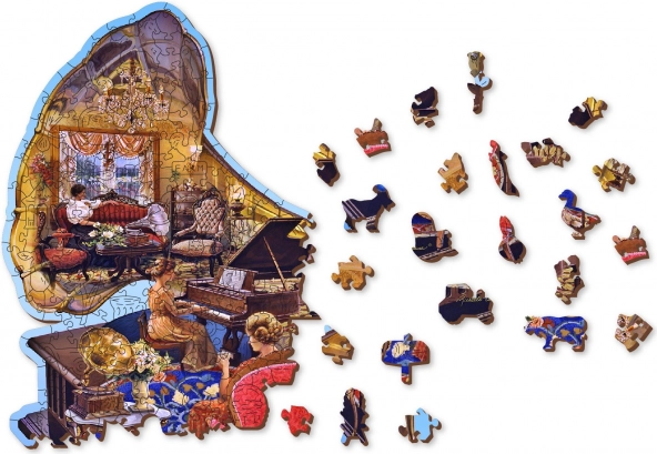 Objevte krásu ručně ilustrované scény s gramofonem a klavírem v prémiovém dřevěném puzzle, které nabízí 40 originálních „whimsy“ dílků ve tvaru zvířat, laserovou přesnost bez třísek a ekologické balení bez plastů. S vyšší obtížností a pevným HDF materiálem je to ideální dárek i výzva pro milovníky designových puzzle.