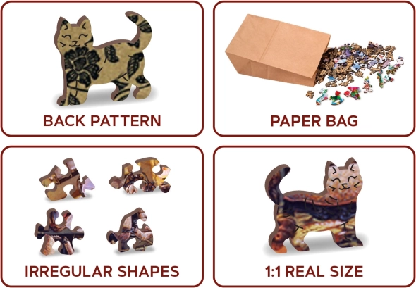 Uvnitř balení najdete samostatnou předlohu pro pohodlné skládání. 40 jedinečných dílků ve tvaru zvířat přináší zábavnou variabilitu a vyšší náročnost – oproti klasickým puzzle vás čeká promyšlenější výzva, která skvěle trénuje soustředění, jemnou motoriku a trpělivost.