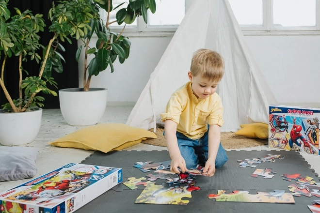 Super Maxi puzzle s 24 velkými dílky potěší všechny malé fanoušky superhrdinů. Děti si sestaví akční scénu s týmem AVENGERS, a pak otočí dílky a užijí si druhou stranu – omalovánku a jednoduché předkreslovací dráhy pro procvičení ruky.