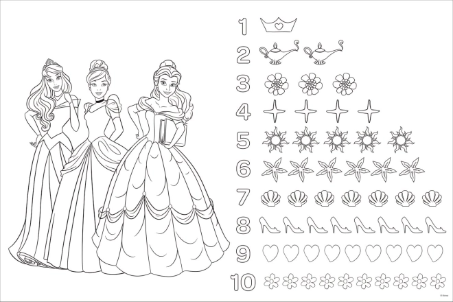 Jedna strana pro skládání s DISNEY PRINCESS, druhá pro vybarvování a jednoduché úkoly – ideální kombinace kreativity a logiky.