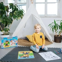 Díky robustním dílkům a jasným ilustracím děti snadno sestaví obrázek a poté mohou pokračovat malováním. Hra s puzzle podporuje logické myšlení, soustředění i vizuální vnímání a omalovánky rozvíjejí kreativitu a fantazii.