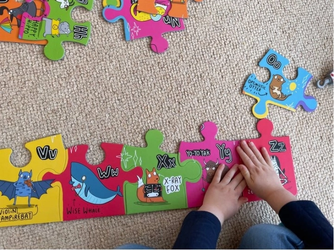 Puzzle pomáhá rozvíjet jemnou motoriku, kognitivní schopnosti a zároveň poskytuje praktickou výuku anglické abecedy.