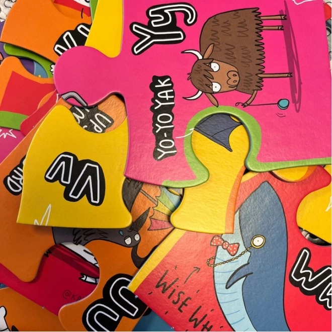 Každý dílek puzzle představuje jedinečnou zvířecí postavičku spojenou s písmenem abecedy. Tím budou děti bavit a zároveň se učit.