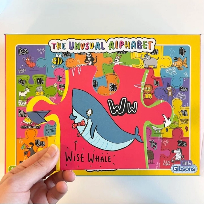 Objevte svět písmen a zvířat s Gibsons puzzle Netradiční abeceda. Perfektní vzdělávací pomůcka, která kombinuje učení s hrou. Každý dílek je dostatečně velký (14x19 cm), aby se dal snadno uchopit, a je zdoben pestrými obrázky.