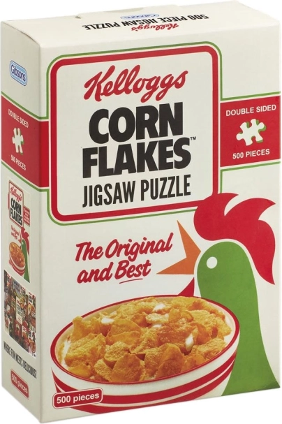 Objevte unikátní zážitek s oboustranným puzzle 2v1 Kellogg's Cornflakes. S tímto puzzlem se ponoříte do historie jednoho z nejikoničtějších produktů značky Kellogg's. Užite si zábavu se dvěma různými designy na každé straně.