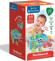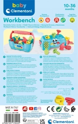 Malý pracovní ponk CLEMENTONI BABY Play for Future je ideální hračka pro zvídavé děti, které rády šroubují, zatloukají a objevují svět nástrojů. Ponk se během chvilky promění v praktickou bednu s pohodlnou rukojetí, takže lze všechny součásti snadno uklidit a vzít kamkoli s sebou.