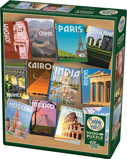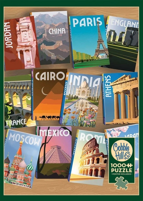 Užijte si skládačku s motivem Kam příště? od značky Cobble Hill s 1000 dílky a nepravidelnými tvary, které zvyšují obtížnost a zábavu. Součástí je i předloha/plakát 31,6 × 22,9 cm, hotové dílo má 48,9 × 67,6 cm.