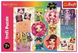 Užijte si kvalitní puzzle s hrdinkami RAINBOW HIGH, které potěší děti i fanoušky seriálu. Díky 200 dílkům nabízí skvělou kombinaci zábavy a lehké výzvy, přičemž výsledný obrázek vynikne jasnými barvami a detailním zpracováním.