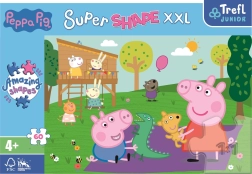 Puzzle Super Shape 60 XXL přinášejí dětem oblíbený motiv PRASÁTKO PEPPA v extra velkém a přehledném provedení. Dílky jsou přizpůsobeny dětským ručkám a některé mají netypické tvary, které skládání dělají zábavnějším a intuitivnějším.