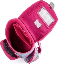 Hlavní komora je dostatečně prostorná pro všechny školní potřeby do 1. a 2. třídy, přední kapsa je ideální na svačinu. Pevné dno chrání obsah a zvyšuje stabilitu proti převržení. Bezpečnostní přezka usnadňuje zapínání a reflexní prvky zvyšují viditelnost dítěte za šera i za tmy.