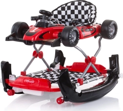 Multifunkční chodítko 4v1 pro děti od 6 měsíců do 12 kg podporuje první krůčky, rovnováhu a koordinaci. Nabízí režimy chodítko, houpátko, hrací centrum a postrkovací hračka. Má širokou základnu pro stabilitu, 3 výškové polohy, 6 zarážek proti pádu a odnímatelný hrací pultík ve tvaru formule se zvuky a světly.