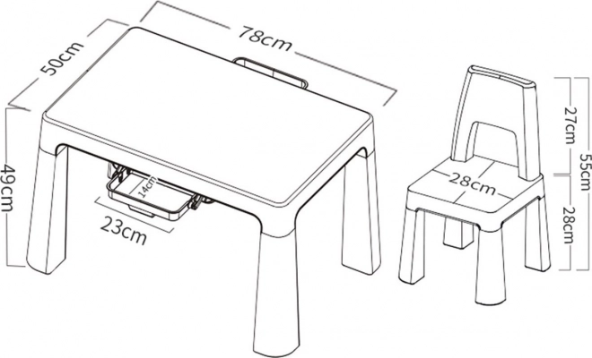Dětský set Neo poskytuje pohodlné a bezpečné místo pro kreslení, čtení i hraní. Díky modernímu vzhledu skvěle zapadne do každého interiéru a odolný plast usnadňuje údržbu i každodenní používání.