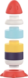 Stoleček podporuje učení formou hry – děti se učí rozlišovat tvary, barvy a zvuky, trénují úchop a koordinaci ruka-oko. Uprostřed čeká zábavná funkce: po zatažení za knoflík se v kopuli roztočí kočička. Nechybí ozubená kolečka, hrkající korálky a prvky pro stavění věže. Celý stoleček lze snadno využít i jako praktický úložný box.
