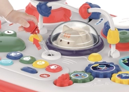 Zábavný interaktivní stoleček pro nejmenší, který rozvíjí smyslové vnímání, jemnou motoriku a kreativitu. Nabízí světelné a zvukové efekty, dvojstupňovou regulaci hlasitosti, otočný panel se stranou pro stavebnice typu lego a spoustu tlačítek, ozubených koleček a herních prvků. Panel lze vyjmout, stoleček poslouží i jako úložný box na hračky.