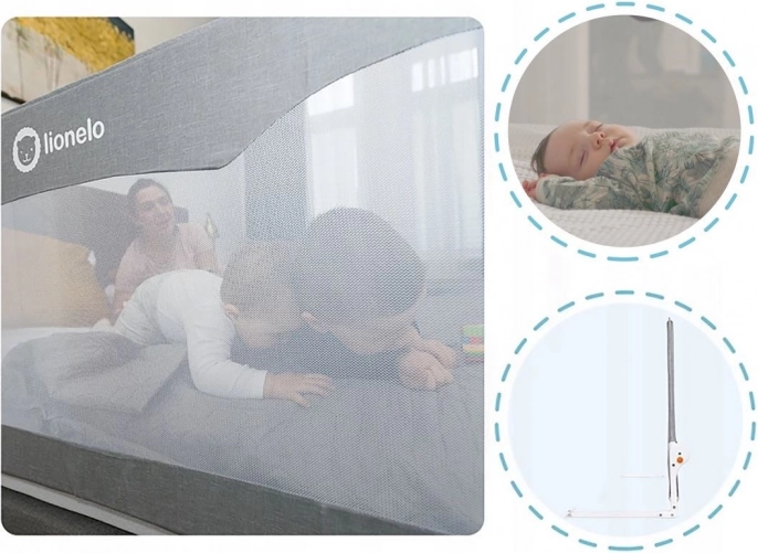 Zábrana HANNA je jednou z nejvyšších na trhu, takže pasuje i k velmi vysokým matracím. Prodyšná síťovina je šetrná k dětské pokožce, zajišťuje optimální proudění vzduchu a umožňuje rodičům mít dítě stále na očích. Mechanismus skládání o 180° dovolí zábranu rychle sklopit k rámu postele – zůstává nenápadná a připravená k dalšímu použití.