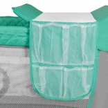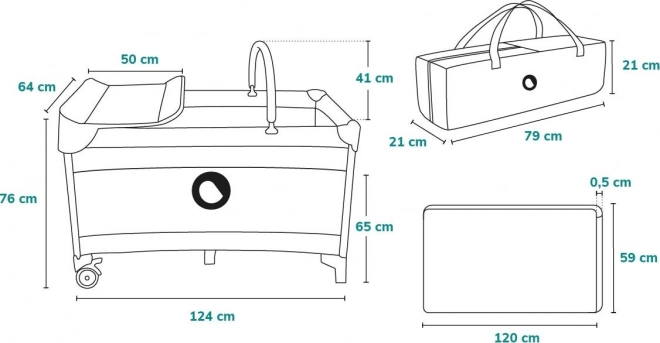 Bohaté příslušenství zahrnuje přebalovací pult se zvýšenými okraji, praktický organizér na potřeby, oblouk s látkovými hračkami a boční vchod na zip pro samostatný průlez dítěte. Pěnová matrace 120 × 60 × 5 cm se zvýšenou pružností poskytuje pohodlí při spánku i odpočinku. Bezpečnost podporuje zámek proti samovolnému složení LockGuard a shoda s normou EN 716 ověřená laboratoří SGS.