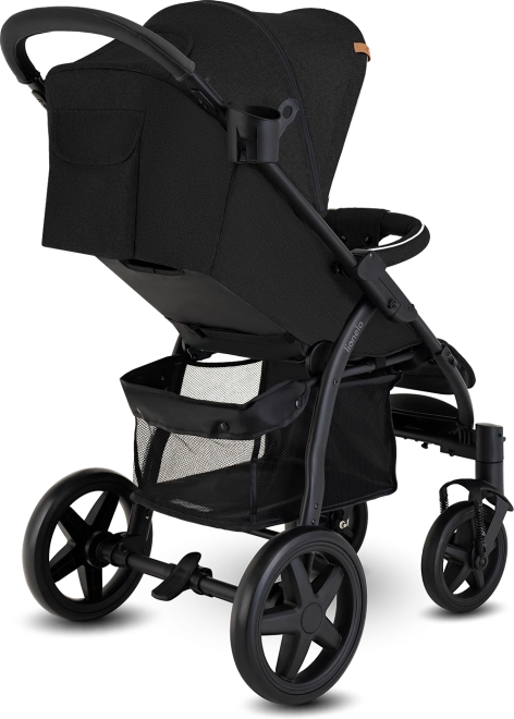 Bezúdržbová pěnová kola EVA jsou neprorazitelná, přední se otáčejí o 360° s možností aretace pro jízdu rovně na nerovném povrchu. Měkké odpružení tlumí nárazy, spolehlivá parkovací brzda drží kočárek na místě. O bezpečí se starají 5bodové pásy a odnímatelné madlo; reflexní detaily zvyšují viditelnost. Praktický koš, ergonomická rukojeť z eko kůže a příslušenství v balení dělají z Annet Plus ideální volbu pro aktivní rodiny.