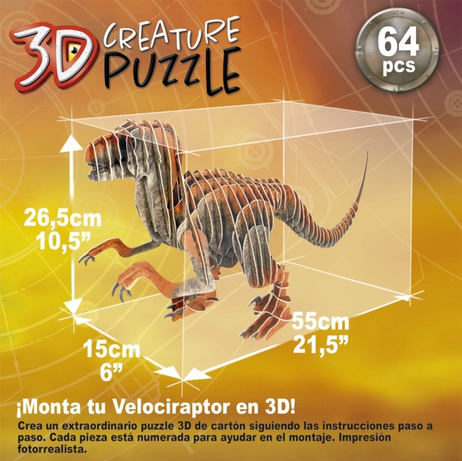 Objevte chytrou zábavu pro malé i velké. 3D puzzle velociraptora se skládá krok za krokem podle očíslovaných dílků a šipek, takže je vhodné i pro začátečníky. Díly se jednoduše vyloupnou z kartonových archů a pevně do sebe zapadnou – bez nutnosti lepidla či nůžek.
