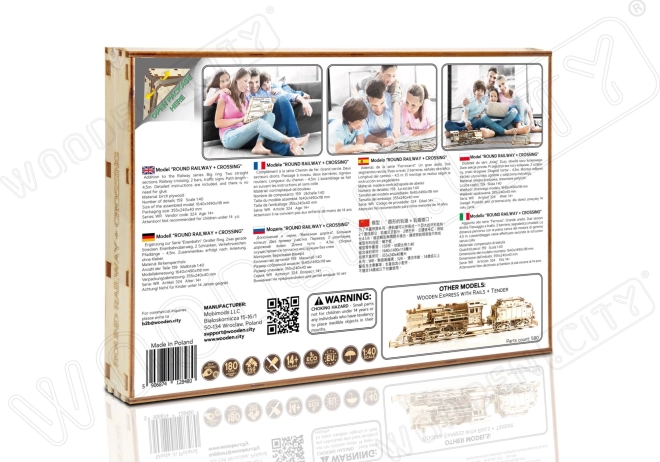 WOODEN CITY 3D puzzle kruhové koleje s přejezdem přináší unikátní zážitek z modelaření i hry. Díky promyšlené mechanice a kvalitnímu dřevu vznikne funkční železnice v měřítku 1:40, na které můžete pomocí přejezdu měnit směr jízdy. Sestavení je zábavné a poučné – poznáte, jak spolupracují převody, ozubená kolečka a gumičkový motor.