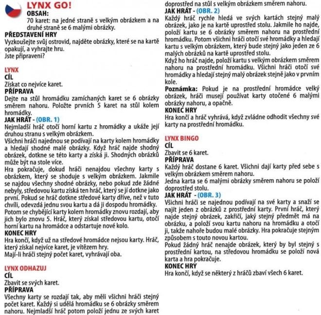 Karetní hra Lynx Go! 6v1 nabízí šest různých herních variant, které posilují pozornost, koordinaci oka a ruky, a rychlost reakce. Tato hra je navržena tak, aby poskytovala hodiny zábavy pro celou rodinu.