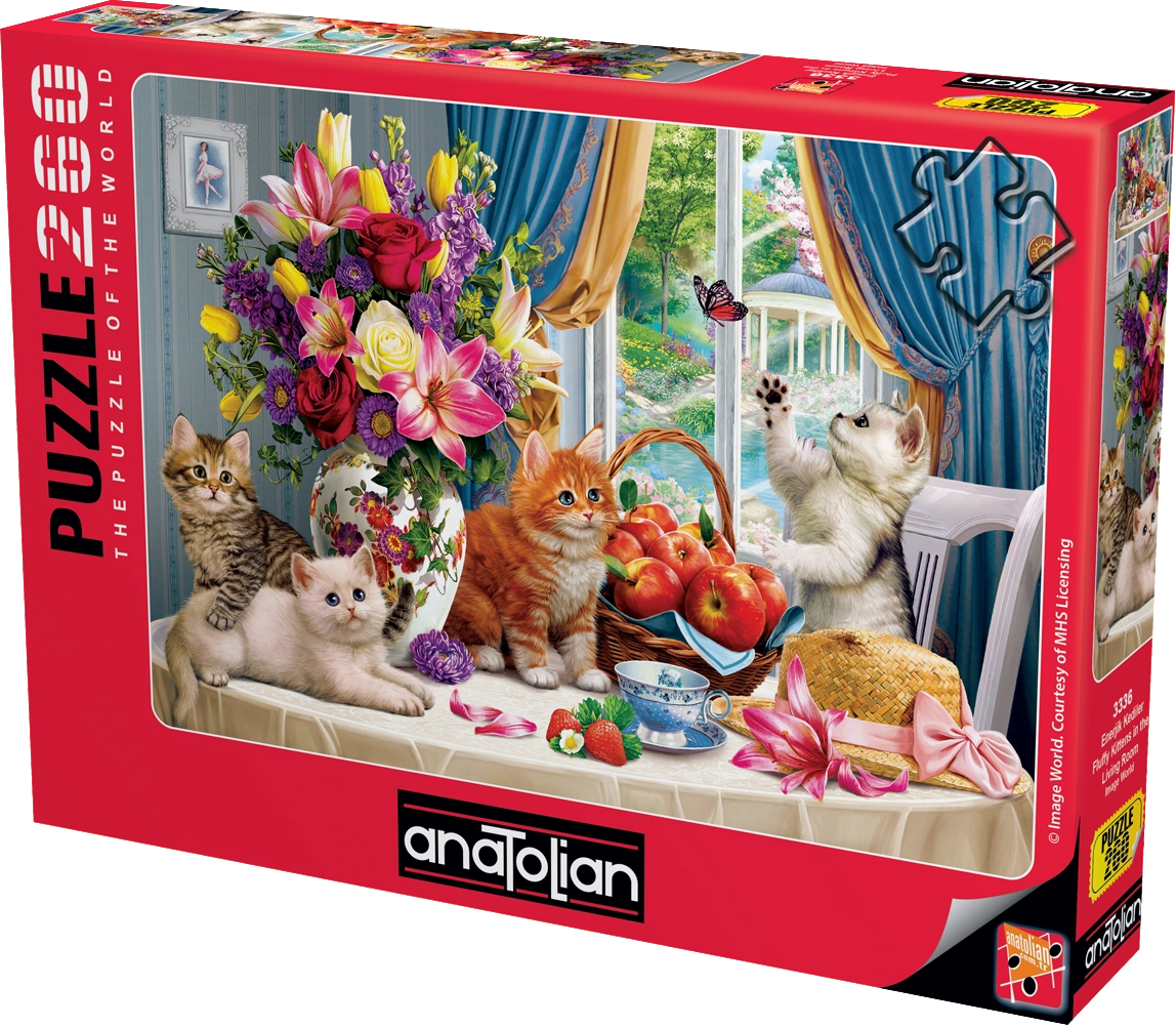 Milý motiv načechraných koťátek v útulném obývacím pokoji potěší děti i dospělé. Puzzle ANATOLIAN vyniká přesně vyřezanými dílky a kvalitním tiskem, díky kterému jsou barvy živé a detaily ostré. Skládání nabízí příjemnou relaxaci, rozvíjí logiku a podporuje jemnou motoriku.