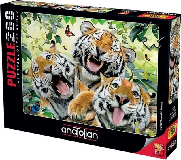 Toto úžasné puzzle od značky Anatolian přináší efektivní způsob, jak si odpočinout a užít si volný čas. Obraz tygra, zachycený v komickém selfie výrazu, zaujme nejen děti, ale i dospělé. Jde o skvělý způsob, jak posílit koncentraci a trpělivost.