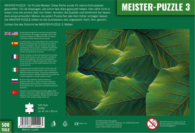 Meister-Puzzle jsou vytvořena pro ty, kteří mají „normální“ puzzle dávno v malíčku. Motiv listy pracuje s jemnými odstíny a opakováním tvarů, takže každé přiložení dílku je o pečlivém pozorování detailů a trpělivosti.