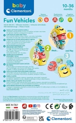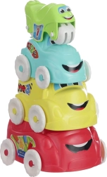 Objevte zábavnou sadu pro nejmenší – stohovací vozidla CLEMENTONI BABY z kolekce Play for Future. Čtyři barevná vozidla – autobus, nákladní auto, osobní auto a motorka – lze stohovat, vkládat do sebe a neustále objevovat. Vyrobeno z 100% recyklovatelných materiálů a z nezávadného (non‑toxic) plastu pro bezpečné učení hrou.