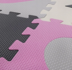 - Bezpečný materiál: měkká pěna s hrubším reliéfem pro lepší stabilitu.