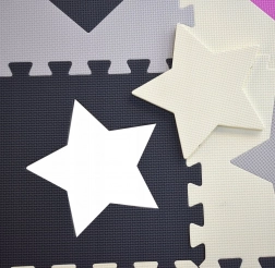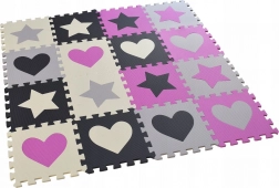 Pěnové puzzle s jemně vroubkovaným povrchem je ideální jako hrací koberec do dětského pokoje, herny i obývacího pokoje. Jednotlivé díly můžete libovolně skládat a přizpůsobit tak velikost prostoru. Vyjímatelné tvary srdíček a hvězdiček podporují motoriku a kreativní hraní.