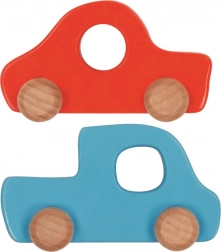 Balení obsahuje dvě dřevěná autíčka, jedno červené a jedno modré, které podporují dětskou kreativitu a rozvoj motorických dovedností.