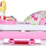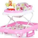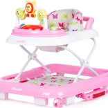 Díky třem výškovým úrovním snadno přizpůsobíte chodítko aktuální výšce dítěte. Přední kolečka se otáčejí o 360°, takže se dítě může pohybovat plynule všemi směry. Praktické je také rychlé skládání a možnost pultík odepnout a používat samostatně jako hračku.