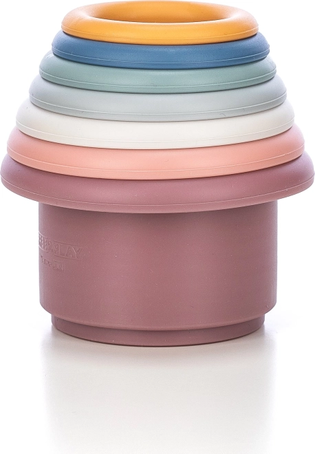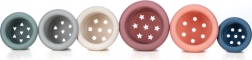 Díly lze stavět do věže nebo vkládat do sebe, díky čemuž se děti učí tvary, barvy a pořadí velikostí zábavnou formou.