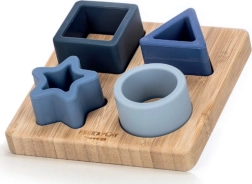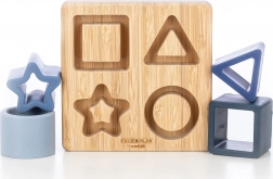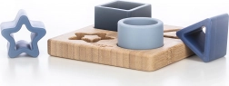 Tato kvalitní dřevěná vkládačka s modrými silikonovými dílky (čtverec, trojúhelník, hvězda a kruh) je navržena tak, aby dětem přirozeně pomáhala s rozpoznáváním tvarů a barev. Měkký povrch dílků je příjemný na dotek, dobře se drží a motivuje k opakovanému skládání.