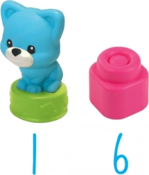 - 6 měkkých kostek, 1 figurka kočičky, 1 plastový kyblík/box s víkem