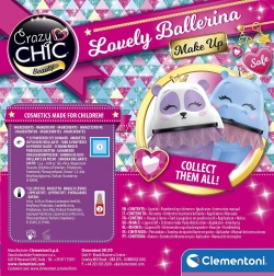 Sada CRAZY CHIC od CLEMENTONI přináší hravé líčení v designu hroší baletky s roztomilou látkovou sukýnkou a zlatou korunkou. Uvnitř najdete pečlivě sladěné jemné odstíny, které podpoří přirozený a stylový vzhled. Děti mohou zkoušet líčení samy, podle kamarádek či maminky, a také se inspirovat online návody.