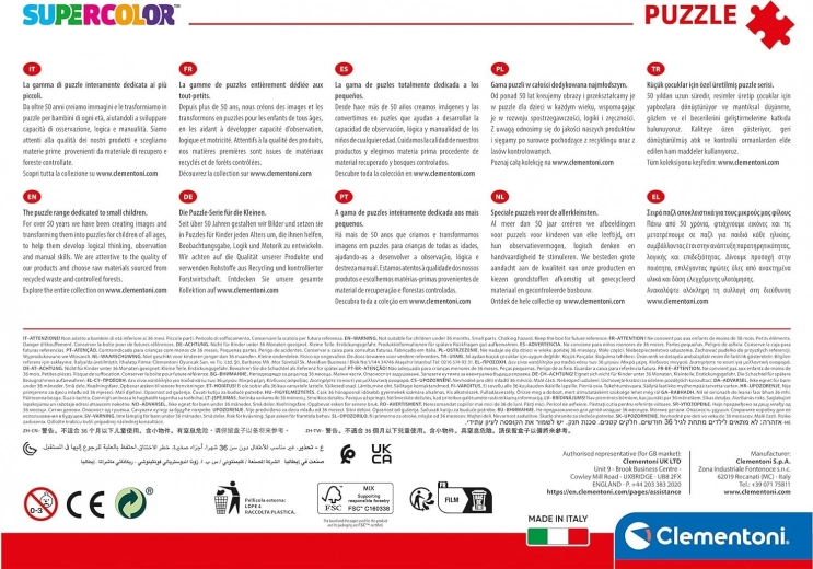 Po složení můžete obrázek znovu rozebrat a skládat opakovaně, nebo jej podlepit a použít jako dekoraci do dětského pokoje. Značka Clementoni patří mezi největší světové výrobce a je známá kvalitním zpracováním a širokou nabídkou motivů včetně 3D skládaček.