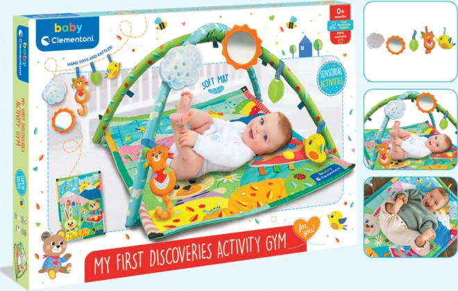 Clementoni Baby hrací podložka Moje první objevy je navržena pro podporu dětského rozvoje a motorických dovedností. Tento interaktivní prostor poskytuje dětem možnost objevovat svět kolem sebe, zatímco si hrají v bezpečném a pohodlném prostředí.
