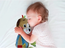 Na tlapce má praktické poutko s kousátkem, což je vhodné pro malé dětské ruce a pomáhá při prořezávání zoubků.