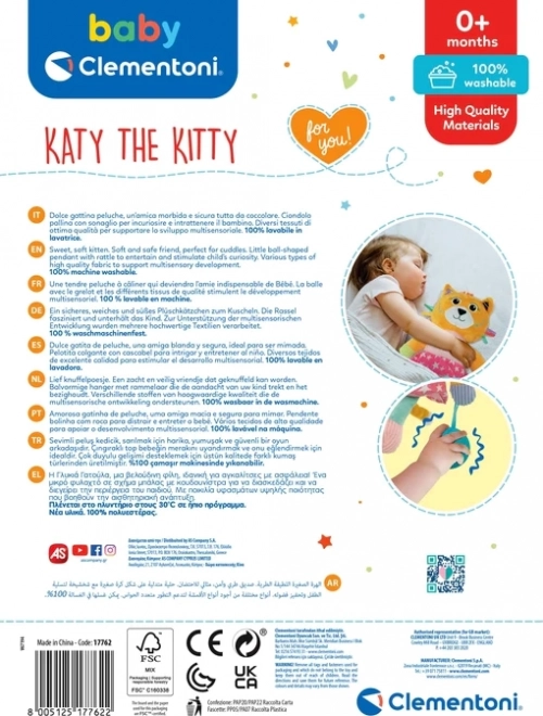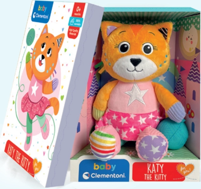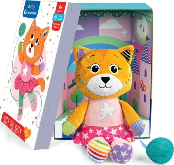 Roztomilá plyšová kočička je ideální kamarád pro nejmenší. Kombinuje různé textilie pro bohaté smyslové vjemy, má chrastítko ve tvaru míčku na tlapce a díky měkkému zpracování je skvělá na mazlení. Dodává se v dárkové krabičce, kterou lze použít i jako praktickou postýlku. Hračka je pratelná na 30 °C v programu pro jemné prádlo.