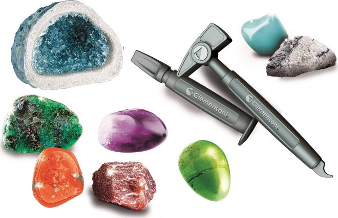 Objevte kouzlo minerálů a drahokamů s dětskou vědeckou sadou CLEMENTONI. Tato zábavná sada představí dětem základy mineralogie a gemologie, nabídne těžbu drahokamů z cihly, tvorbu fascinující geody s třpytivými krystaly a rozvíjí manuální dovednosti, kreativitu i zájem o vědu.