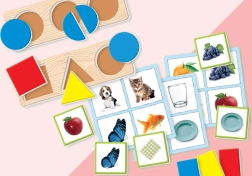 - Učení barev a tvarů – vizuální rozlišování, pojmenovávání a logické přiřazování.