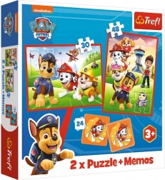Sada puzzle a paměťové hry TREFL PAW PATROL přináší dětem od 3 let hodiny tvořivé zábavy. Dvě samostatné skládačky (30 a 48 dílků) s barevnými scénami ze seriálu motivují děti k trpělivosti a rozvíjejí logické myšlení i koordinační schopnosti. Hra Memos s 24 kartičkami trénuje vizuální paměť i sou koncentraci.